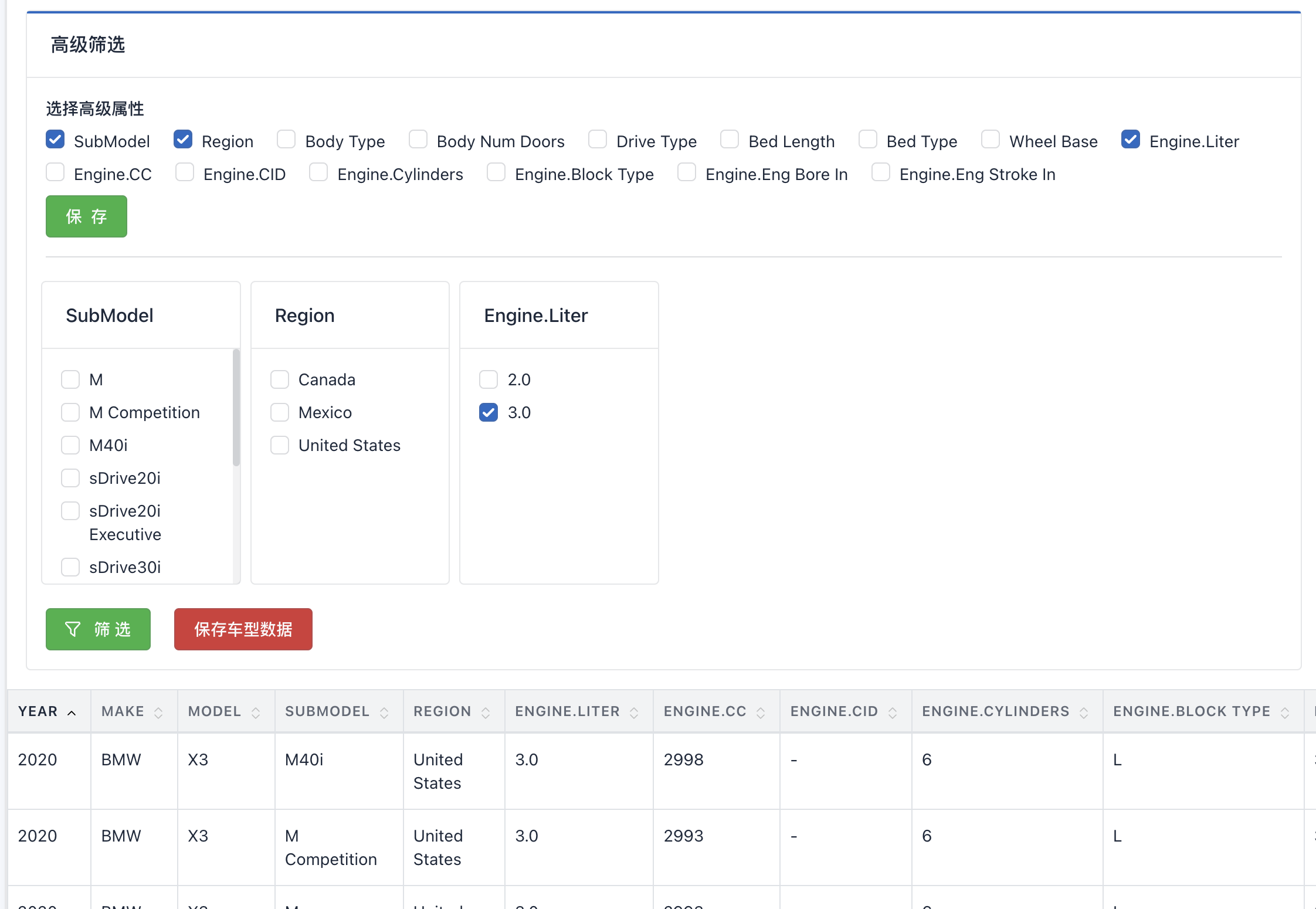 - 车型数据查询页面进行了更新,增加了更多的可筛选字段