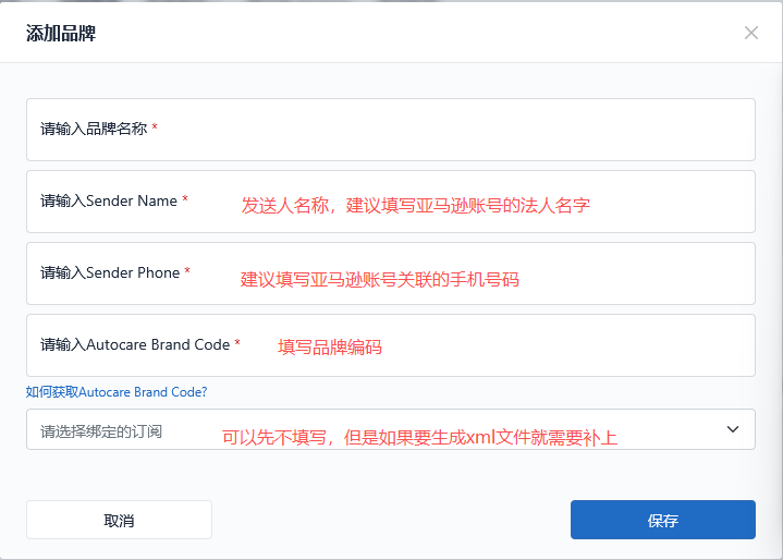 登录系统后,点击 品牌管理,之后点击 添加品牌 按钮,会填出一个表单,按照说明填写即可。