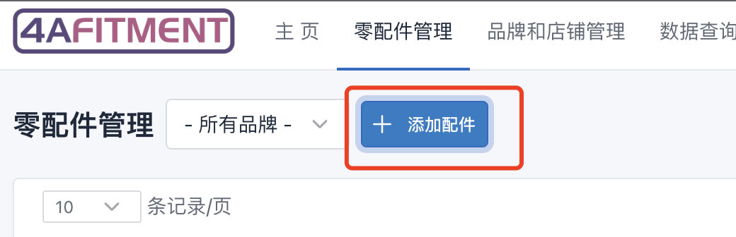 点击系统主菜单中的 零配件管理 进入页面,界面如下图所示: