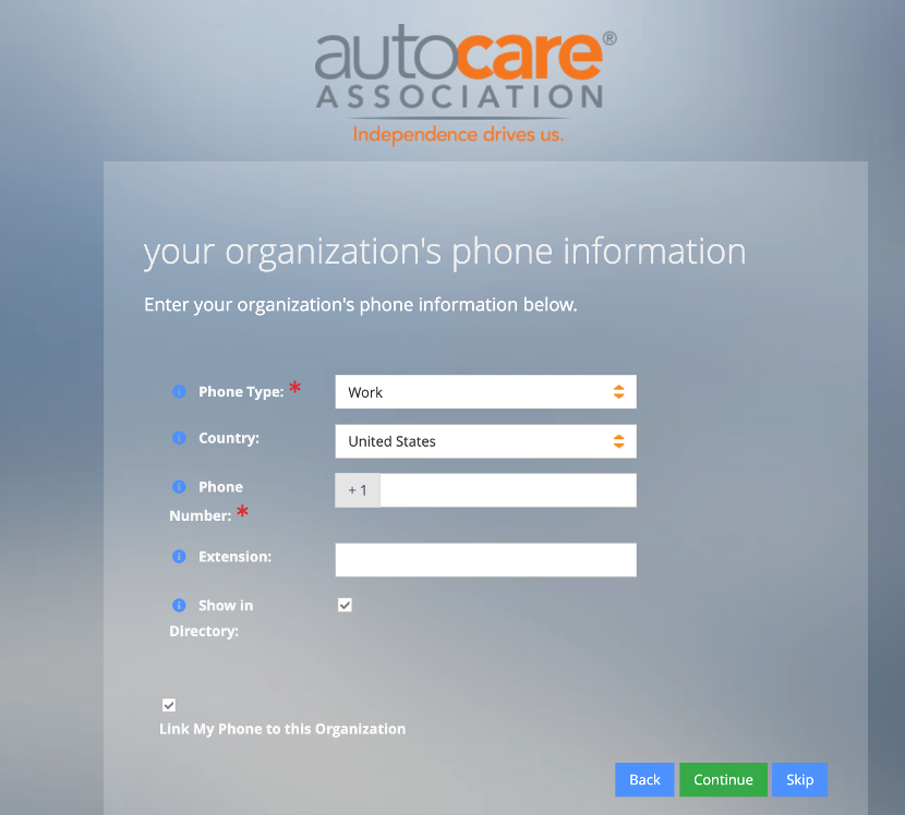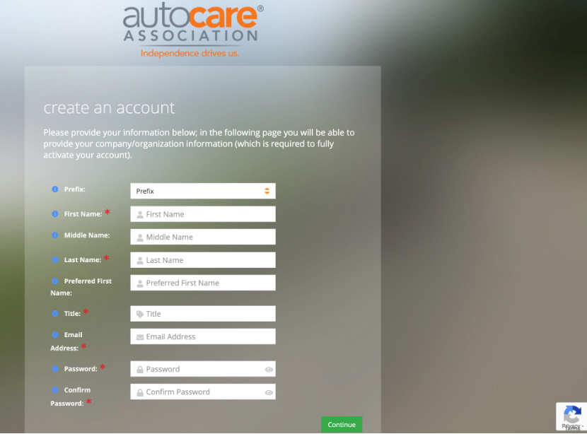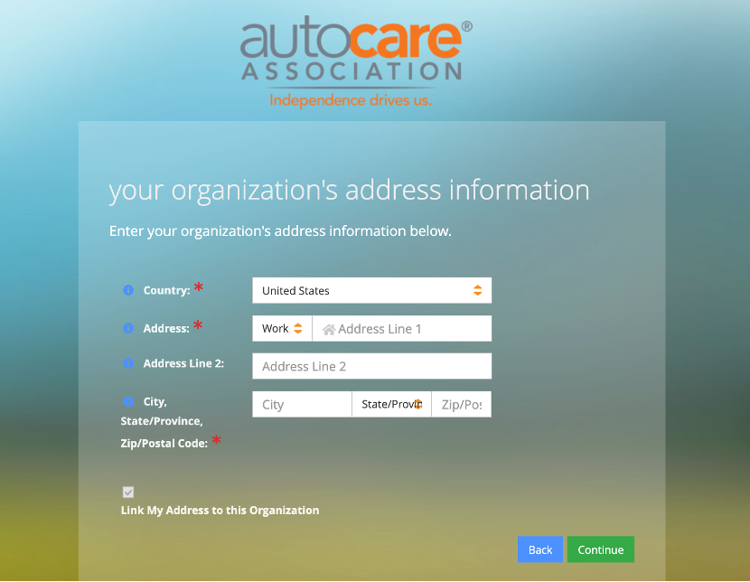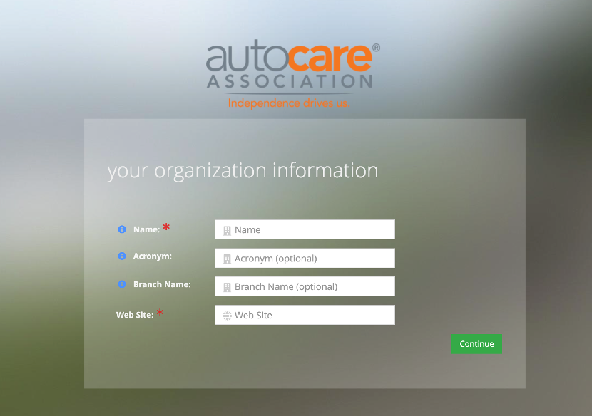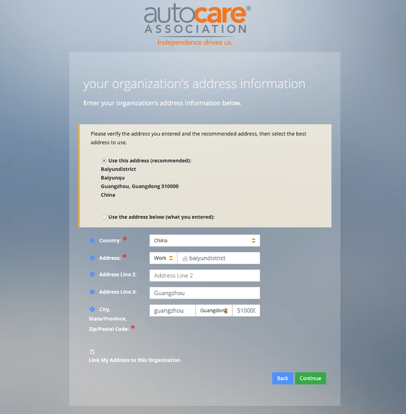 系统可能会根据你填写的公司名称, 提示你是否要加入已经在Autocare系统中存在的公司, 这时候应该选择 Not listed above, 然后在下方的输入框中填写公司名称, 然后点击 Continue 按钮