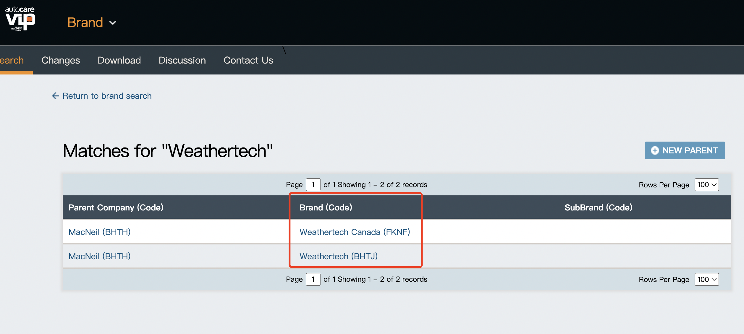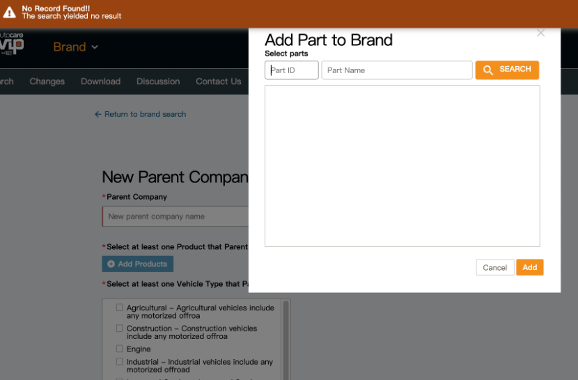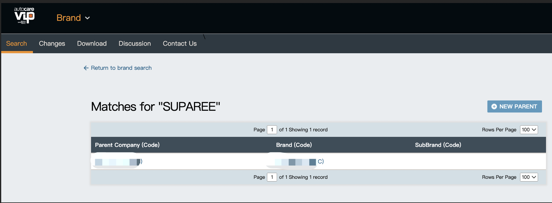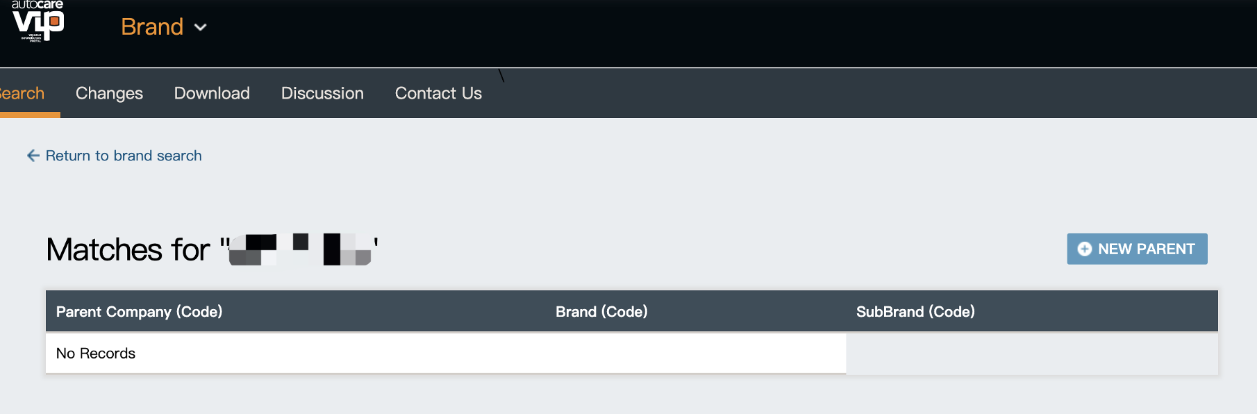 如果你的品牌名称从来没有在 Autocare 申请过 Code,那么将会出现以下搜索结果: